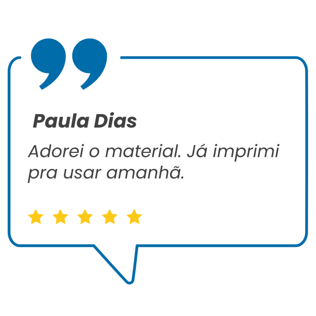 Material pronto para baixar, imprimir e já aplicar na próxima aula, poupando tempo do professor em planejamentos.