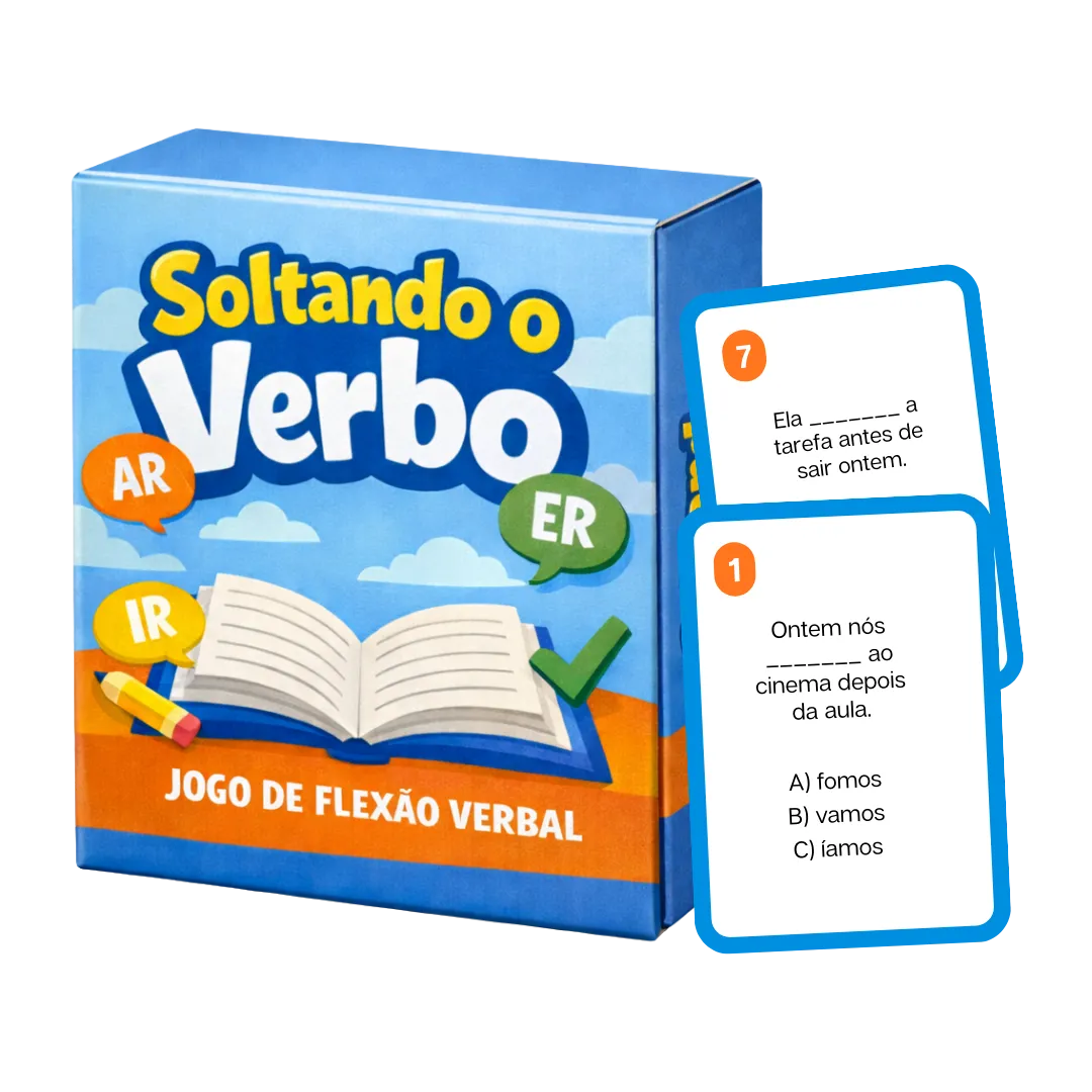 Jogo de cartas em PDF com 50 frases para completar com flexões verbais, de forma divertida e competitiva, em sala de aula. Engaje os alunos e facilite o ensino dos verbos na prática.